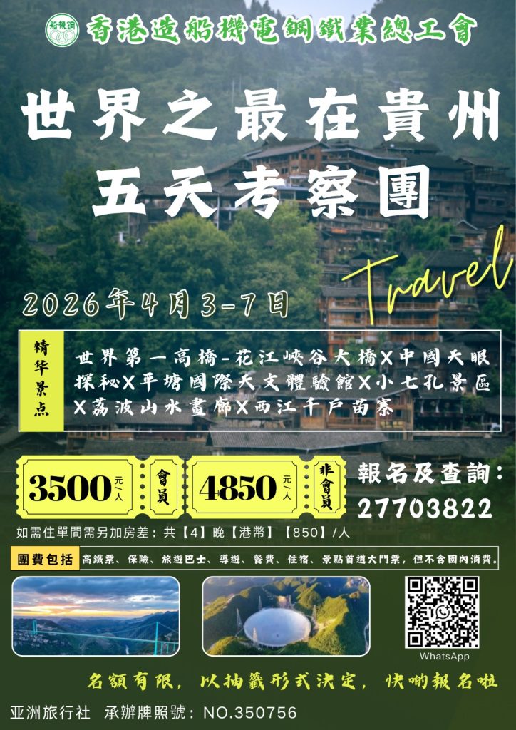 🌍 世界之最在貴州・5 天考察團 🔥 名額抽籤速報!一次走齊「世界第一高橋 + 中國天眼 + 人間仙境 + 千 […]